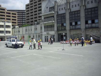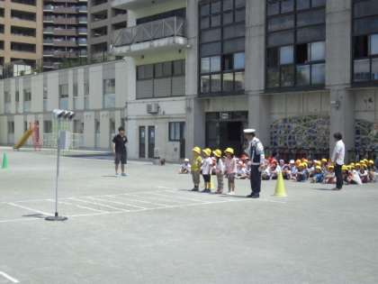 今日も成城警察署の皆様にご協力いただき、1年生を対象に交通安全教室を行いました。