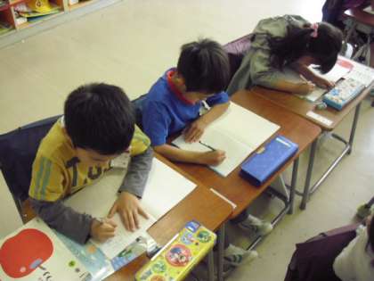 フラッシュカードを用いて板書を工夫したり、ノートの書き方について細かく指導したりすることにより、子どもたちは濁点の正しい表記の仕方をしっかりと理解することができていました。
