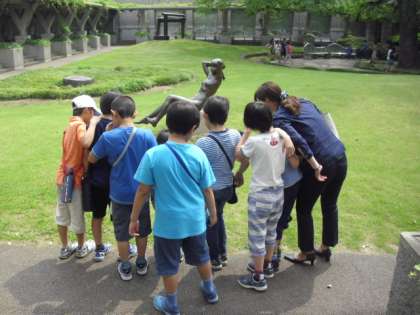 4年生は、図画工作の学習の一環として、世田谷美術館へ美術鑑賞に行きます。美術館では5〜8人のグループになり、担当の方から様々な美術品について教えてもらいます。
