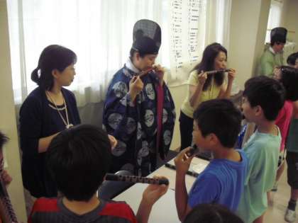 音楽ボランティアサークル「おたまじゃくし」の皆様にご協力いただき、講師をお招きして雅楽の授業が6年生を対象に行われました。