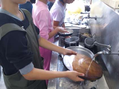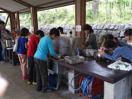 食事のあとは、後片付けです。
