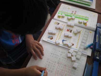 川和教諭は、9月から新任の先生として塚戸小学校に来ました。2が月たちます。子どもたちとも慣れ、落ち着いた授業をしています。この日は、算数の授業でした。掛け算の立式の意味をブロックを使いながら考えていきます。2年2組の成長した様子を感じました。