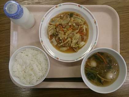 今日の給食は、「ごはん」「ホイコーロー」「春雨スープ」「牛乳」です。今日の献立も、給食委員の6年生が考えました。