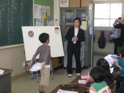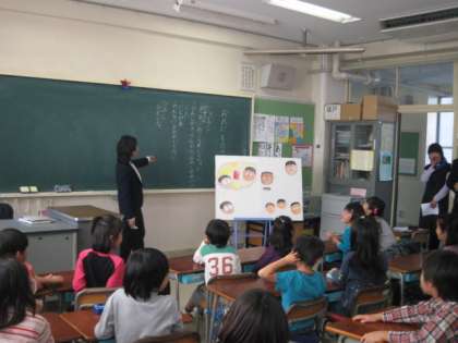この日は、他の学校の先生が授業を見に来ました。道徳の授業です。子どもたちは、自分だったらこうすると表現しながら、善悪の判断や勇気について学んでいました。3組の素直な子どもたちの様子に、見に来た先生は感心していました。