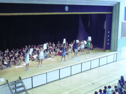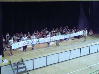 いよいよ明日(6月27日)は子どもたちが楽しみにしている「なかよしフェスタ」が開催されます。その前日として、それぞれの学級の出し物を紹介する「なかよしフェスタ紹介集会」が行われました。