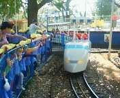 新幹線に乗りました。みんなで乗ると楽しいです。乗っている子も見ている子も、手をふってわーい。