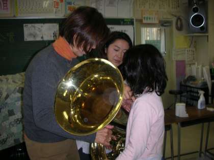 3年生は、6日の日に、音楽の時間、金管楽器の体験をしました。音楽ボランティア「おたまじゃくし」の方々が、やってくれました。金管楽器の音の出る仕組みや、音の出し方など知って、自分でもやってみました。4年生になって音楽クラブに入ると、もっと吹けるようになります。3年生の何人かは、金管楽器に興味をもって音楽クラブに入ることでしょう。