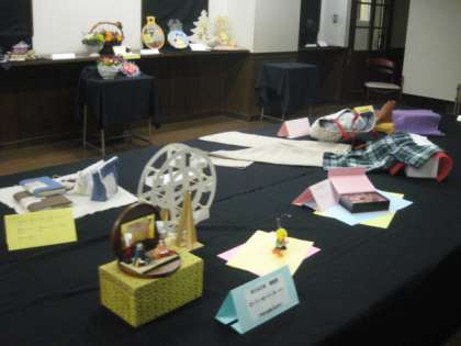プレイルームは、PTAの作品展です。保護者の方や先生たちの作品が展示されています。出品されたそれぞれの方の個性の広がりを感じさせます。