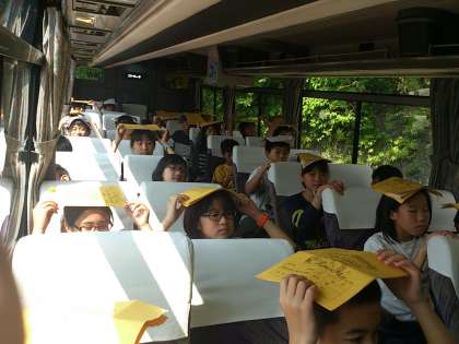 しおりを頭に乗せて、誰が最後まで落とさないでいられるか競争しました。