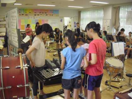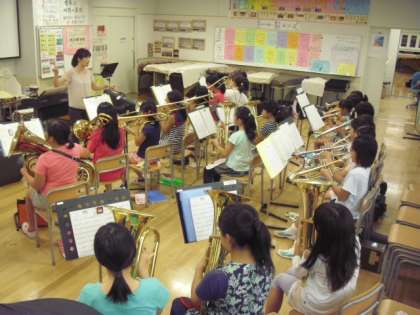 残暑厳しい中、音楽室では音楽クラブが夏休み練習を行いました。