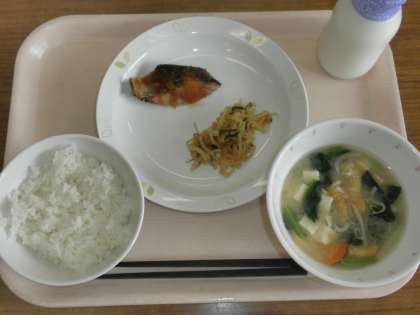今日の給食は「ごはん」「魚のバーベキューソース」「ハリハリ漬け」「青菜のみそ汁」「牛乳」です。ハリハリ漬けは良噛んで食べるかみかみメニューです。レシピをホームページにのせたので、お家でも作ってみてください。