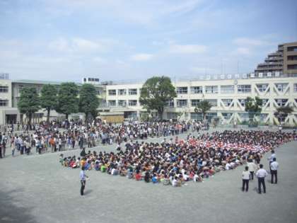 授業参観がある本日に、地震が起き給食室から出火したことを想定した避難訓練が行われました。子どもたちと参観に来ている保護者の皆様が一緒に避難することは、本校では初めて行われる訓練です。