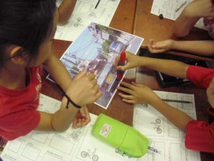 電子黒板を活用した資料提示、ワークシートの活用、グループでの交流活動を生かした学習展開等の工夫により、子どもたちは意欲的に道路に潜む危険を予測したり、回避の方法を考えたりしていました。