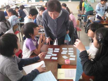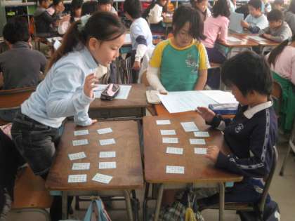 教科「日本語」の授業です。百人一首の導入です。百人一首のいわれを学習した後、20首だけのカルタとりをしました。子どもたちはカルタ取りをしながら、百人一首を覚えていきます。子どもたちは、楽しんで日本の伝統を体で学んでいます。意欲的な子どもたちでした。