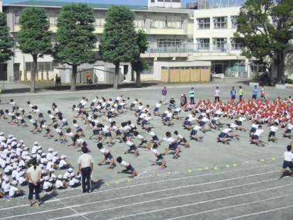 今日は運動会の全校練習です。1000人を超える子どもたちが一斉に行動するので、迫力があります!その中でも、入場行進やラジオ体操は同じ動きをする姿は圧巻です。先生の指示を確実に聞きとり子どもたちは機敏に行動することができました。