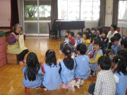 2学期の山の木文庫さんの読み聞かせがありました。子どもたちは、お話にしっかり耳を傾むけていました。どんなお話だったか聞いてみてください。年長・年少、各クラスごと行いました。