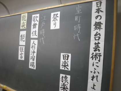 教科「日本語」の授業です。日本の古典芸能の能楽について関心を深めました。この日は、区内の先生方の日本語の研修会の授業でもありました。4組の子どもたちのしっかりした学習態度と、意欲的な学習態度に参観した先生は、感心していました。