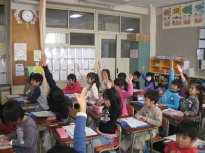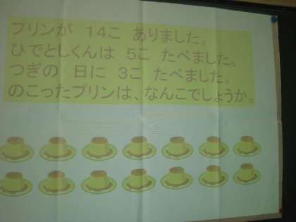 算数の授業でした。問題文を読んで、たし算かひき算かを考え、立式し答えを求めます。子どもたちは、今まで習ったことを活用して、よく考え、答えを求めていました。子どもたちの学力の伸長には驚くばかりです。