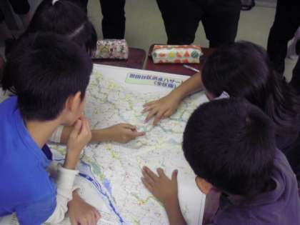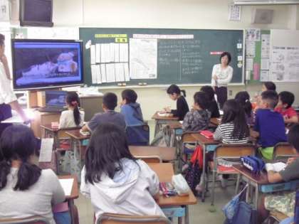 今回の校内研究授業は4年生が総合的な学習の時間「風水害から身を守ろう」の活動に取り組みました。