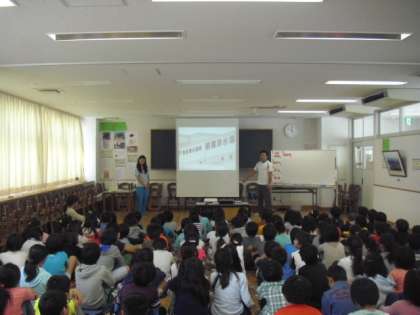 4年生は、東京都水道局の方々をお招きして「水道キャラバン」の出前授業を行いました。「水道キャラバン」とは、水道水に対する理解や関心を高めるために、寸劇、映像、実験などを取り入れた授業のことです。