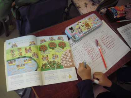 工夫したワークシートを活用することで、子どもたちは「同じ数ずつあるもの」「○こずつ、△こ分」をしっかり確かめながら立式の仕方を理解していました。