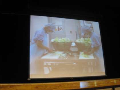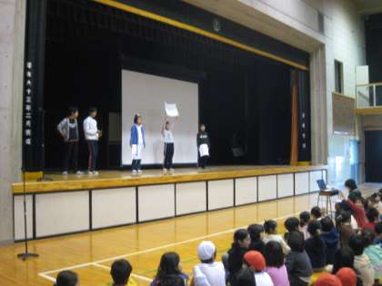 今日は、給食委員会の発表でした。給食がどのようにできるか、ビデオの映像を見ました。給食委員会の活動も紹介されました。給食のことがよくわかったようです。