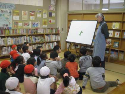休み時間、図書室でどんぐりお話会がありました。お話会の保護者ボランティアの方が、読み聞かせをしてくれます。聞きたい子が図書室に集まって、お話を聞きます。パネルシアターでした。本校は、月1回保護者ボランティアの方によるお話会を企画してます。保護者ボランティアの人、募集中です。やった見たい方は、ぜひ参加してください。