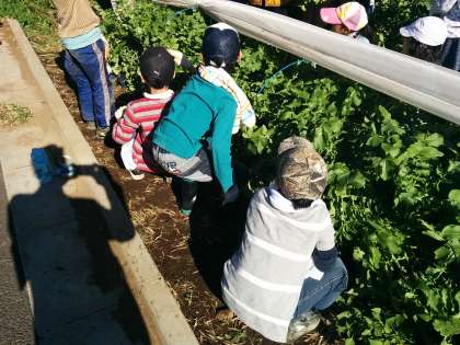 3年生は、近隣の農家の方のご協力により、様々な野菜を作っています。2学期は大根を育てました。子どもたちは大きく育った大根を引き抜く体験をすることができ、大満足のようでした。
