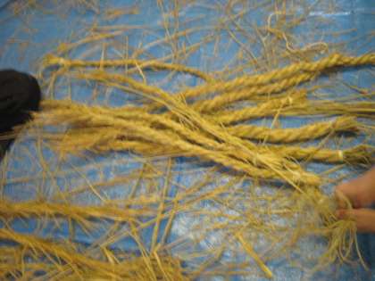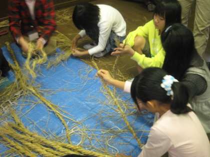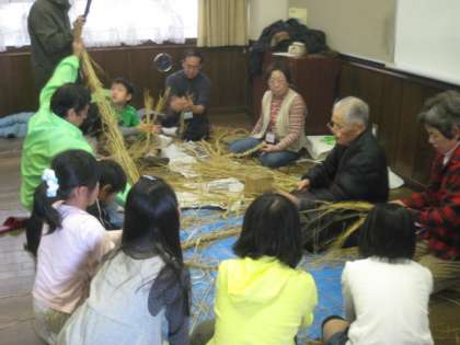 12月の「塚戸チャレンジ」は、クリスマスリース、しめ縄づくりでした。地域の方や保護者の方が先生になって、わらを使って作りました。子供たちにとって、わらを見ること触ることが初めての子もいます。わらの感触を味わいながら作っていました。自分が作ったものを家に持って帰る姿が、うれしそうでした。しめ縄に挑戦しています。