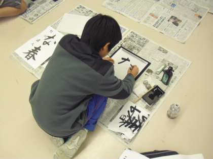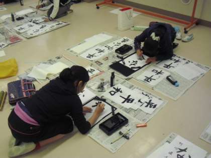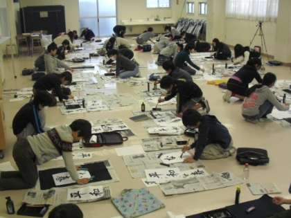 6年生は毎年恒例の書き初めに取り組んでいます。全員が集中して書く姿は「さすが6年生!」です。