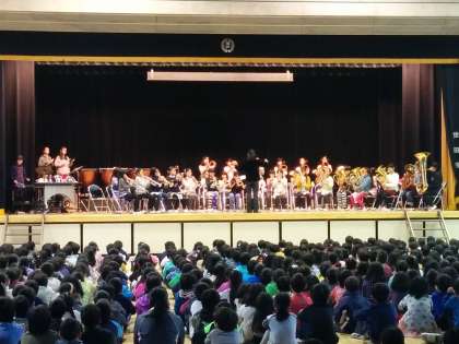 今日の児童集会は音楽クラブによる演奏会を行いました。音楽クラブは2月11日に世田谷区主催の管楽器発表会に出演します。その曲を全校児童に披露しました。1年間の練習の成果が現れた見事な演奏でした。