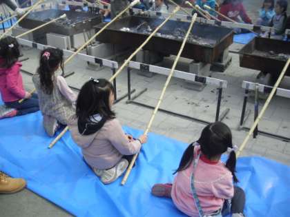 学校が終わってからすぐに、おやじの会の皆さんが準備をしました。子どもたちは火を囲みながら、焼きあがっていくパンに歓声を上げていました。出来上がったパンにバターやブルーベリージャムなどをつけ、美味しくいただきました。