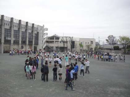 今年度から、朝の授業開始前の時間を活用し、「わくわくモーニング」と称して、様々な運動に親しむ機会を持つことにしました。4月は全学年が大なわとびに取り組みます。