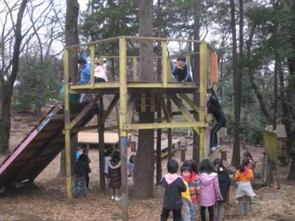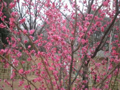 羽根木公園の梅はきれいに咲いていました。子供たちは、羽根木プレイパークで遊びました。