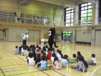 PTAが主催する交通安全教室が行われました。運送会社の方々を講師に、正しい横断歩道の渡り方や、自動車から見えない場所の確認など、子どもたちの興味や関心を高める内容が多く、楽しく活動することができました。