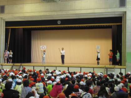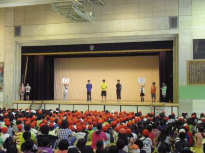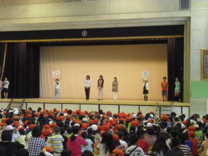 先生方や140周年に関するクイズが出題されました。楽しい企画を準備・実施した集会委員会のみなさん、ありがとうございました。これからも楽しみです。