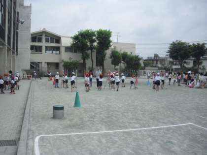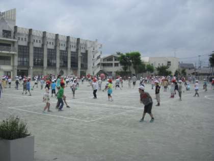 体力向上に向けた取組であるわくわくモーニング。今日から2週間は、クラスごとにドッジボール、竹馬、Sケン、一輪車、バンブーダンスなどの運動を行います。子どもたちは楽しそうに各運動に親しんでいました。