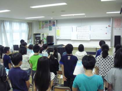 6年3組では音楽「豊かな歌声を響かせよう」「いろいろな音の響きを味わおう」の学習が行われていました。「つばさをください」では、リズムの変化に気づき、曲想の違いを生かし、美しい歌声を響かせました。「ラバーズコンチェルト」では、リズムに気をつけながらリコーダーで滑らかに演奏することができていました。