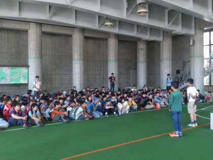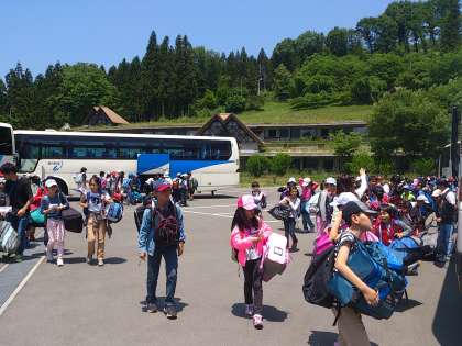 山の斜面をうまく利用して建てられています。まさに自然の中です。屋根付き広場で開室式を行いました。