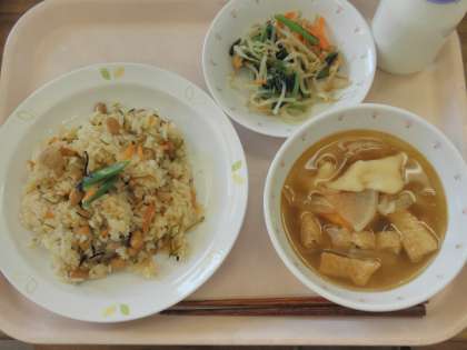 今日の給食は鶏飯風めかぶごはん、すいとん、おひたし、牛乳です。4,5月に給食委員が各クラスで食事中のマナーや姿勢について話をしてくれました。それから時間がたちましたが、しっかりと意識できていますか。その場限りにするのではなく、毎日正しいおはしの使い方や姿勢に気をつけながら、食事をしましょう。