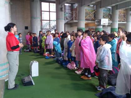 これから林業体験と村めぐりコースに分かれて行動します。その前に、閉室式を行いました。