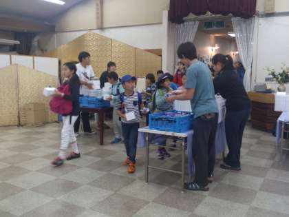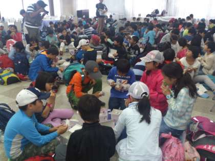 雨のため、昼食はSLホテルのホールをお借りして食べました。