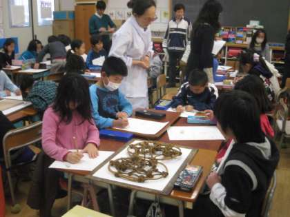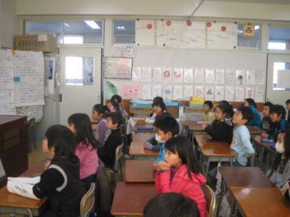 社会科の授業です。昨日の2組の授業と同じ内容です。やはり、体験的な授業は盛り上がります。子供たちの集中する姿勢と、よく考える姿勢がとてもよかったです。こうやって授業を工夫して意欲を引き出しています。