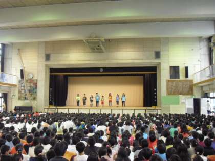 今日の集会では、来週から始まる水泳指導に向けて、心構えや約束を確かめるために「プール開き集会」が行われました。体育委員会のみなさんが、楽しい寸劇を交えて分かりやすく発表してくれました。いよいよ来週から始まる水泳指導に向けて、よい準備ができることでしょう。