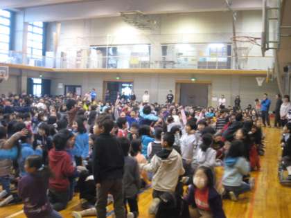 朝の児童集会は、先生を題材にしたクイズでした。どんな先生のどんな面を知ったか、子どもに聞いてみてください。