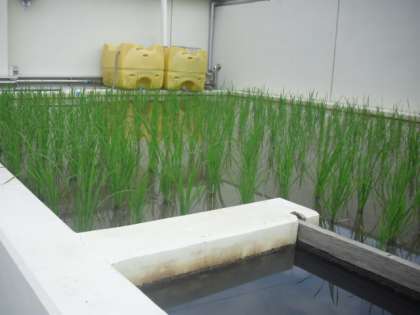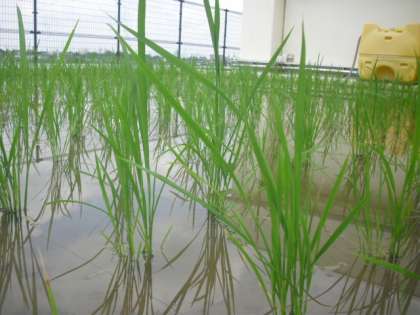 6月に5年生が植えた稲の苗は、6月中旬に入り順調に生長しています。5年生が植えたあとに、学校運営委員の方々が、こまめに水の管理などをしてくださり、立派な苗になっています。これから、分けつ(稲の数が増えていきます)がはじまり、梅雨が明けることには、白い小さな花が見られると思います。ぜひ、ご来校の折にご覧ください。