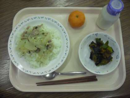今日の給食は、ねぎ塩豚丼、夏野菜の南蛮かけ、冷凍ミカンです。夏野菜の南蛮かけは、今が旬の野菜を揚げて作りました。夏野菜には体の熱や疲れをとってくれるなどの働きがあります。今週のレシピを参考に、ぜひ、お子様と作ってみてください。