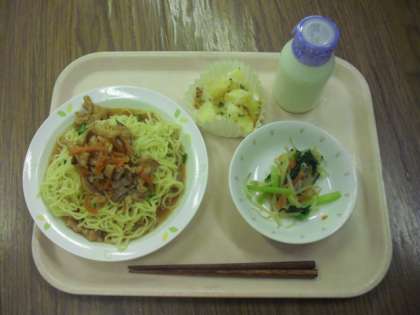 今日の給食は、冷やし中華、野菜のからししょうゆかけ、じゃがいものチーズ焼きです。ここ数日で急に暑くなったため、体が暑さに慣れずに体調を崩している人もいるのではないでしょうか?暑さに負けない体をつくるために、野菜をしっかり食べましょう。野菜が苦手な人もいると思いますが、一口だけでも挑戦してみてください。