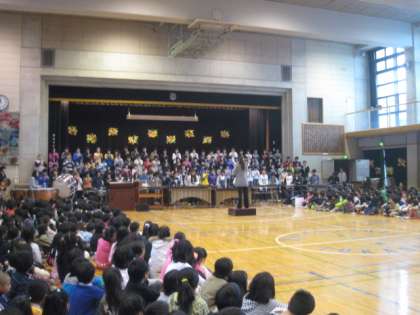 6年生は、「宇宙戦艦ヤマト」の合奏をしてくれました。みんなは大喜びでした。