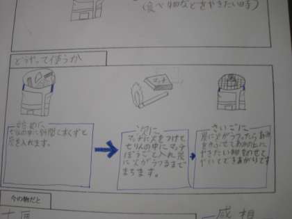 社会科の授業でした。洗濯板や七輪を体験した後、昔の人の暮らしを考える授業でした。「昔の人は大変だったけど、工夫がすごい」「今は便利な暮らしになった」など、体験を通して学んだことをまとめました。ノートへのまとめ方も上手でした。